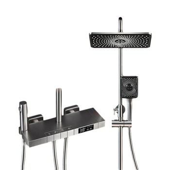 Ensemble de douche à affichage numérique intelligent de style crème à montage mural Lumière ambiante Laiton souple pour projets hôteliers Petits appartements