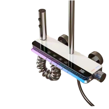 Cinza Atmosfera Inteligente Terno De Chuveiro Display Digital Piano Chaves Válvula De Cerâmica Chuva Macia Torneiras Pressurizadas Jet Pause Spray