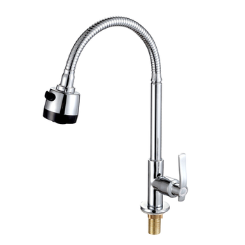 Современный кухонный смеситель с одной ручкой из цинкового сплава, Универсальный хромированный настил, 2-функциональный вращающийся кран с распылителем для холодной воды, гибкий